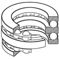 NSK的推力球軸承采用高速運轉時可承受推力載荷的設計,由帶有球滾動的滾道溝的墊圈狀套圈構成。由于套圈為座墊形,因此,推力球軸承被分為平底座墊型和調心球面座墊型兩種類型。另外,這種軸承可承受軸向載荷,但不能承受徑向載荷。